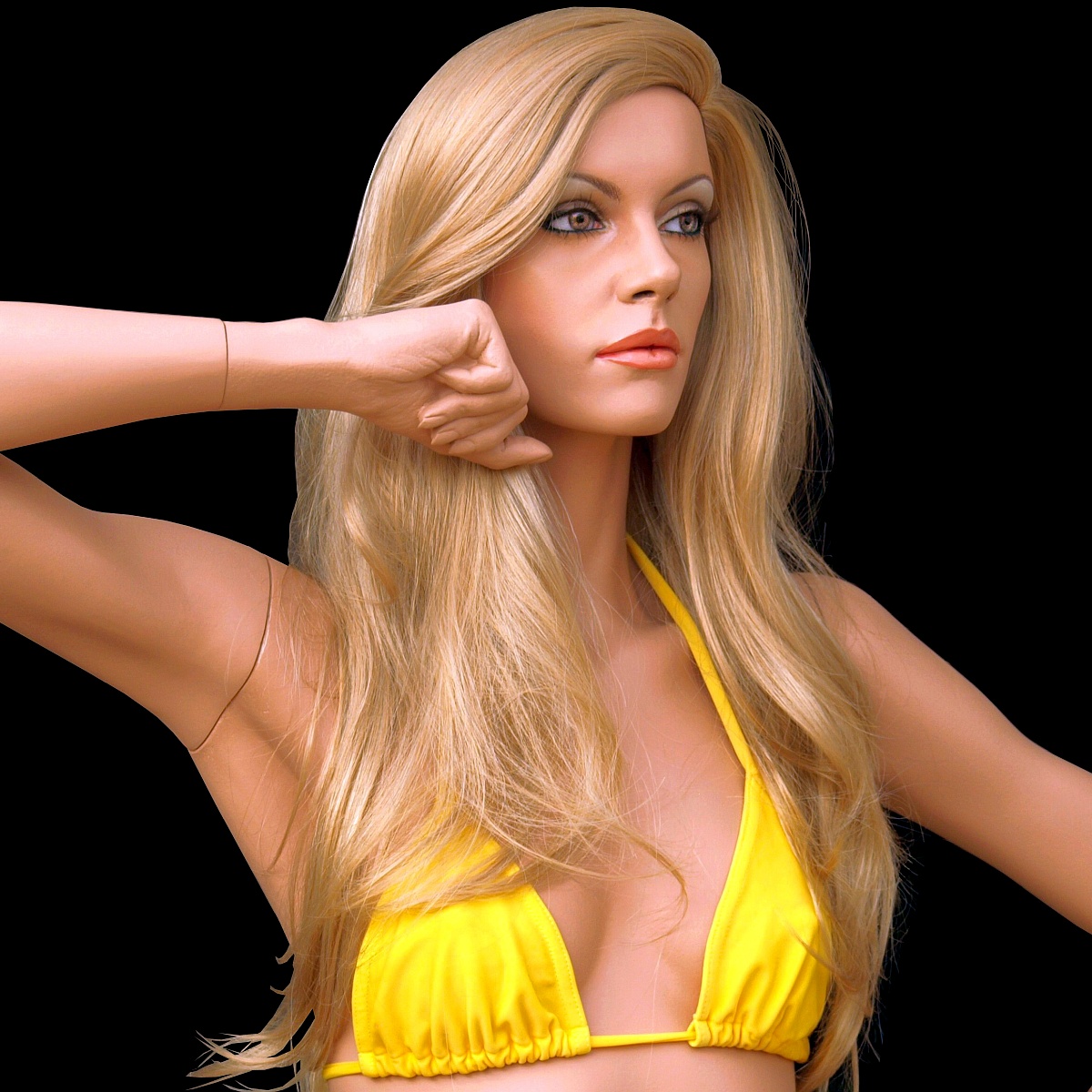 Meet Cheryl, one of the most lifelike mannequins you'll ever see! Originally manufactured by Rootstein as a standard production-line mannequin, she has now been completely Reimagined to look more realistic and beautiful than ever before. She is now a unique and beautiful, one-of-a-kind work of art. Click the photos to enlarge.